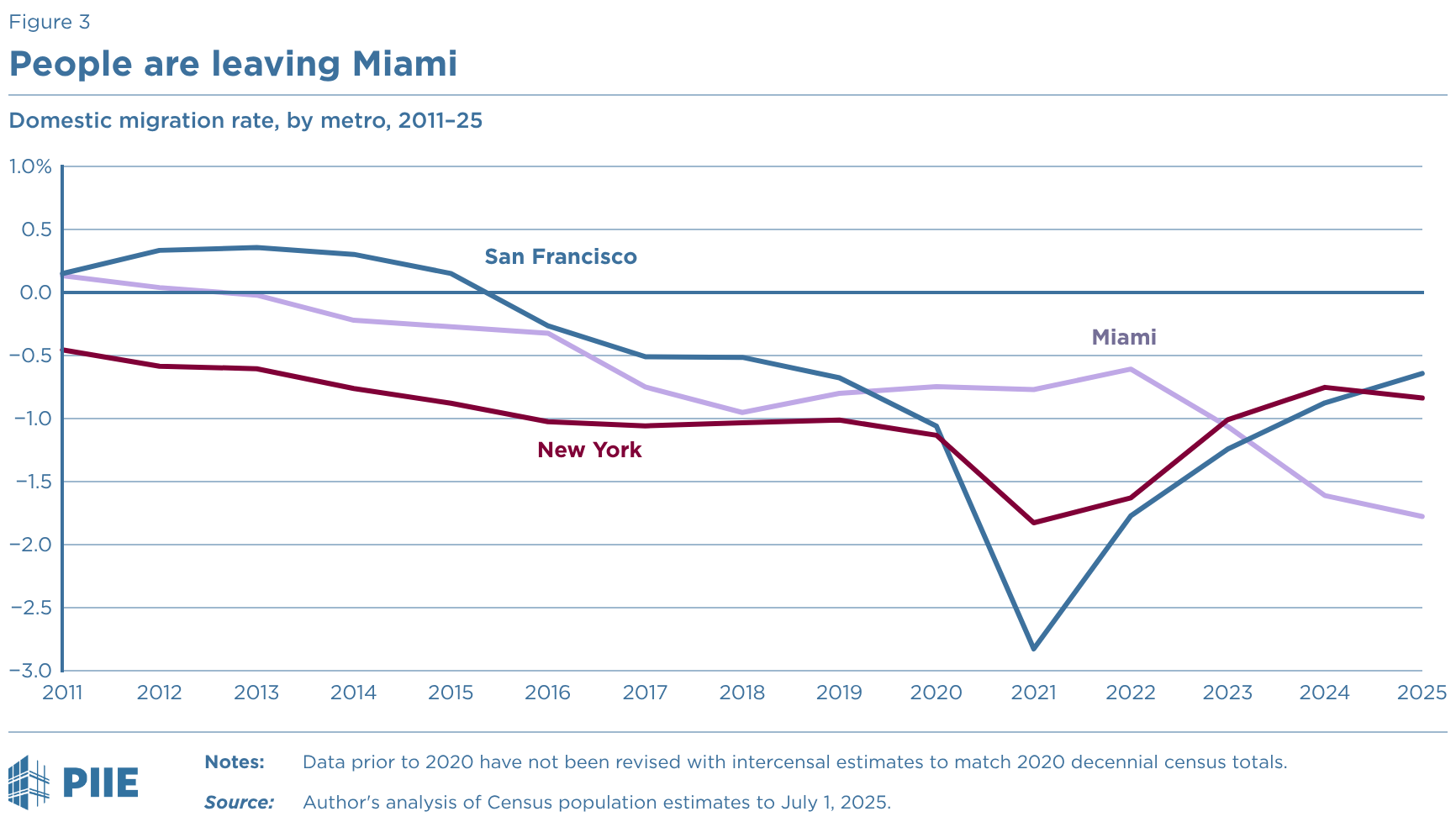 Domestic migration rate, by metro, 2011–25