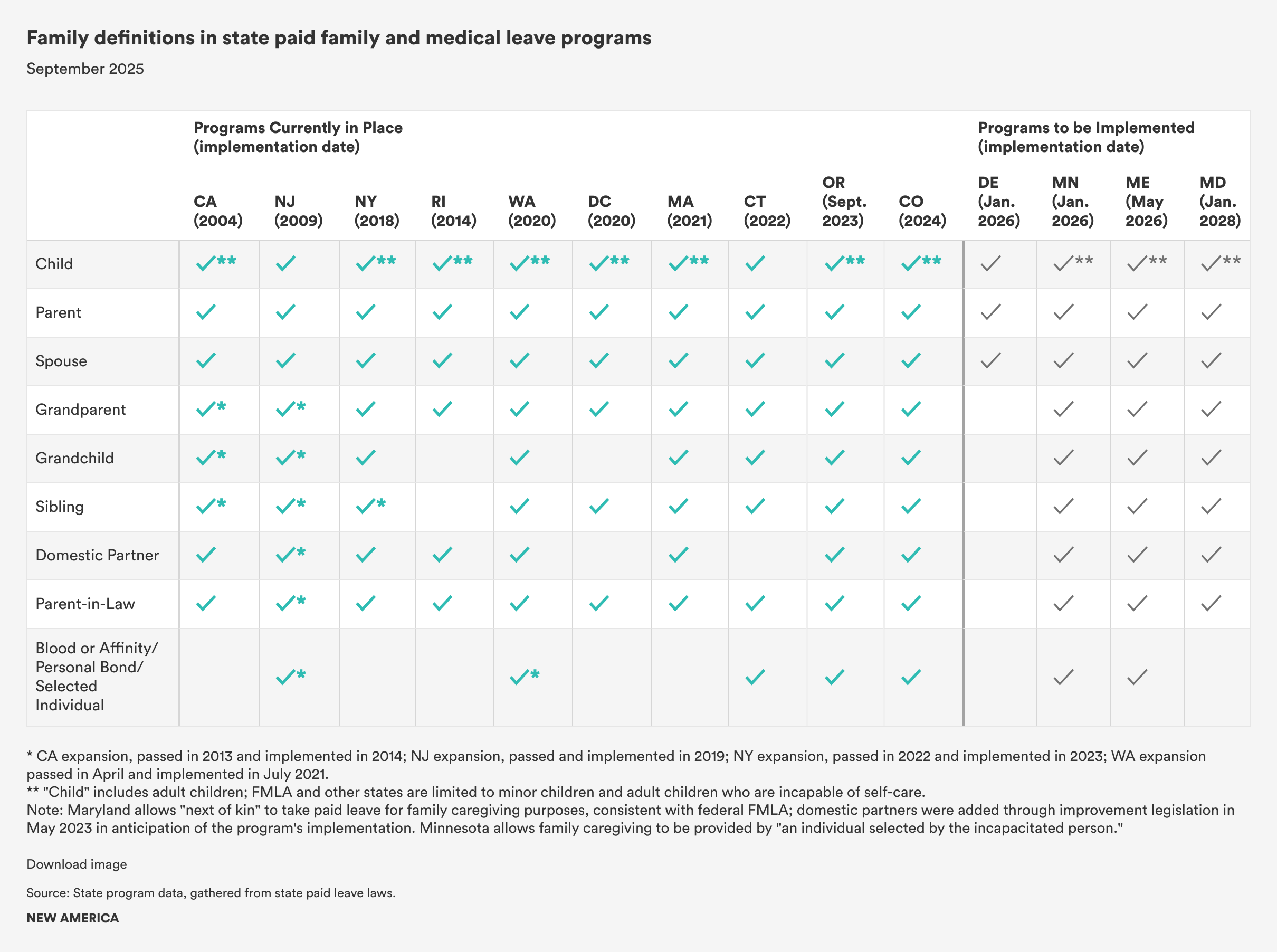 Family Definitions in State Paid Family and Medical Leave Programs (January 2026)