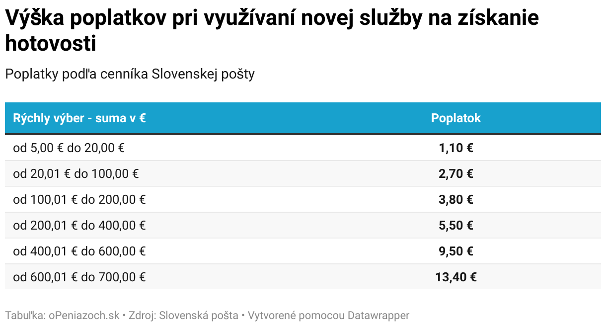 Poplatky podľa cenníka Slovenskej pošty