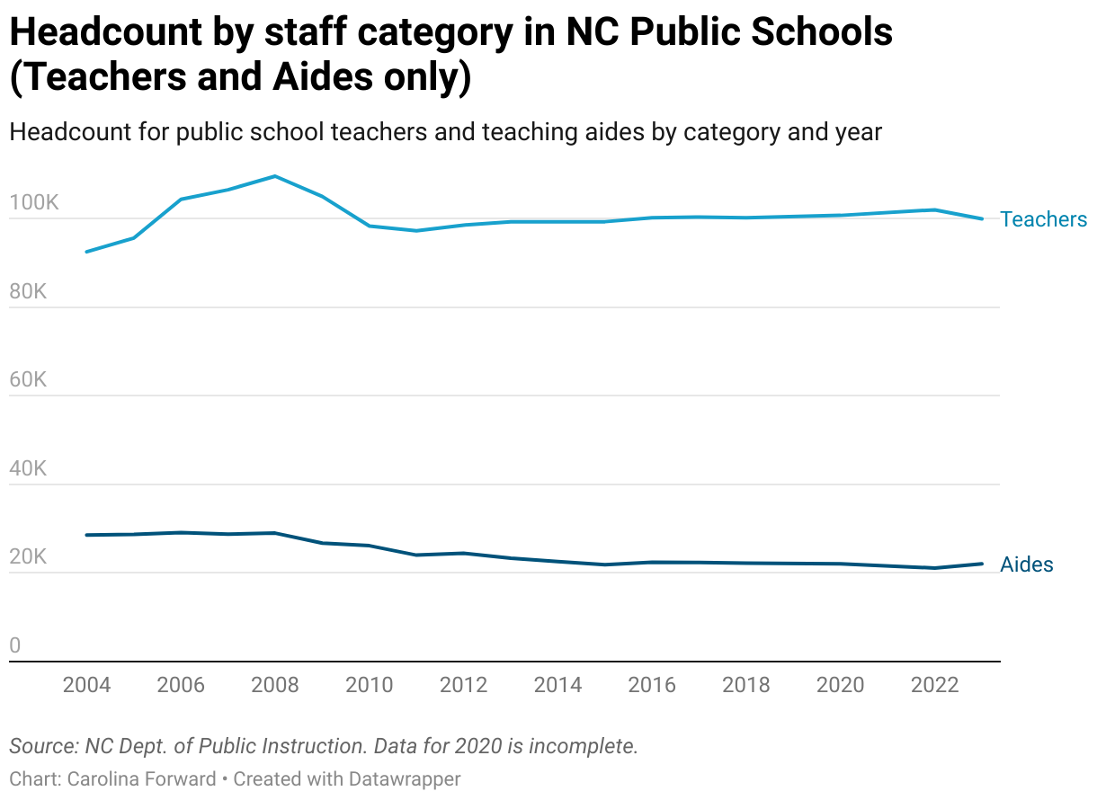 Headcount for public school teachers and teaching aides by category and year