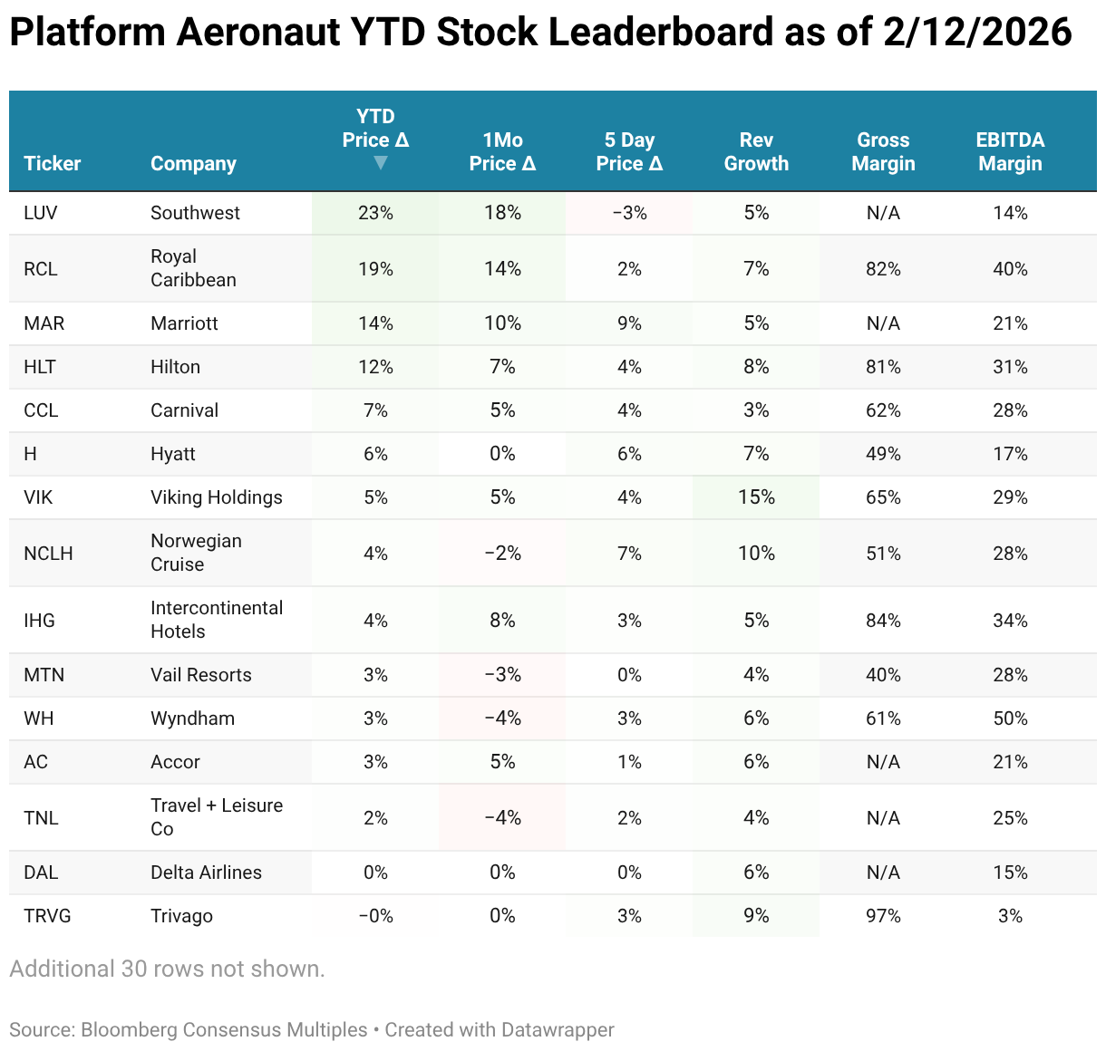 Platform Aeronaut YTD Stock Leaderboard as of 2/12/2026