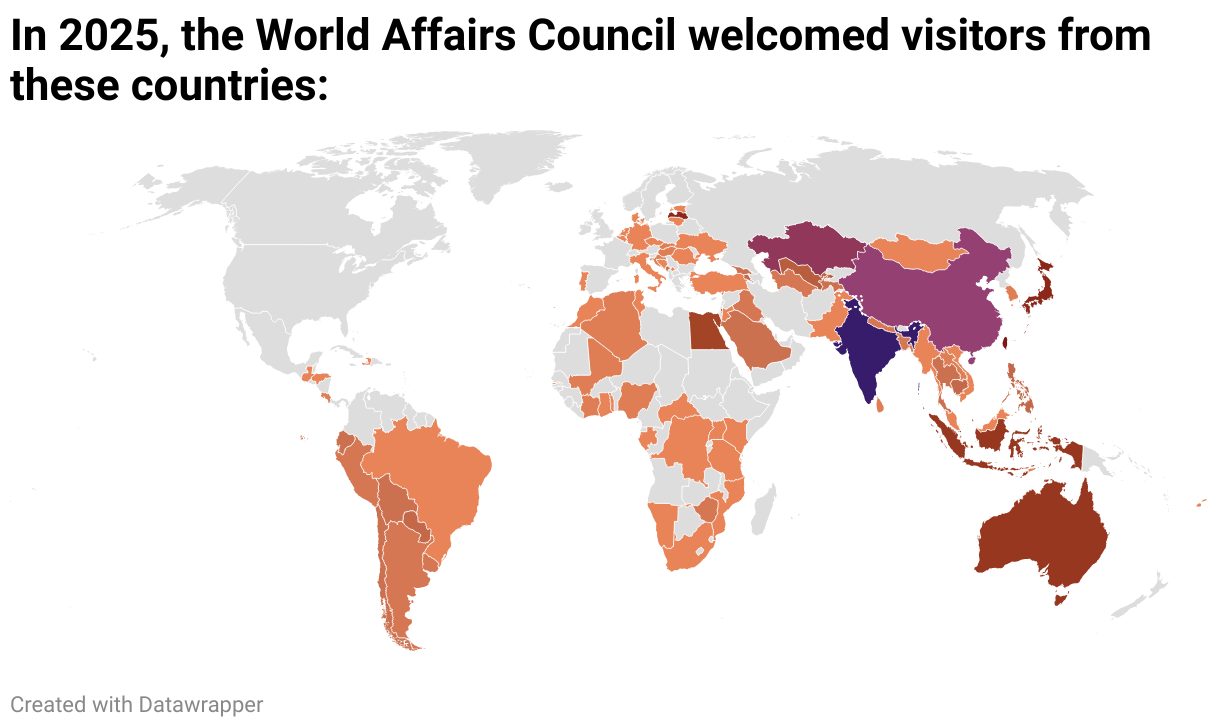 In 2025, the World Affairs Council welcomed visitors from these countries: