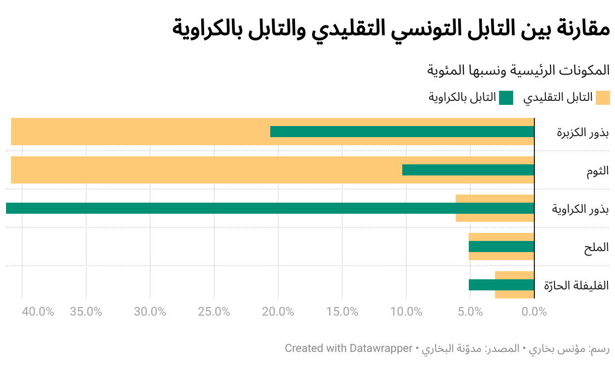 المكونات الرئيسية ونسبها المئوية