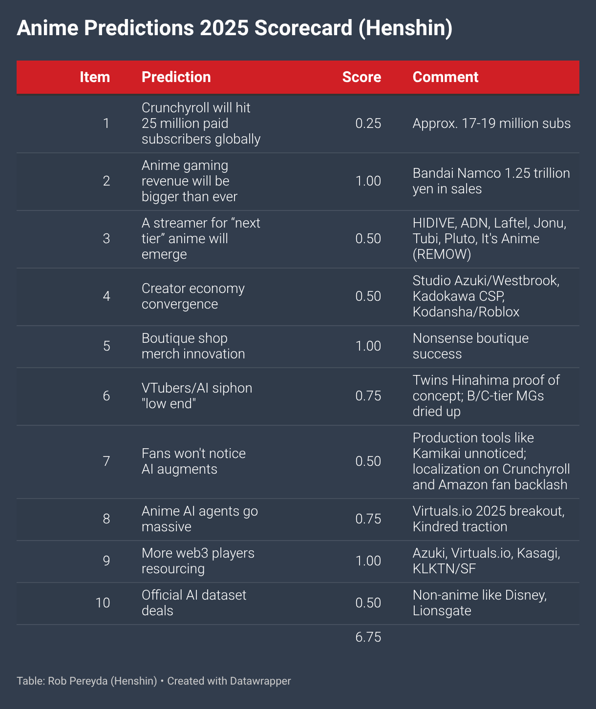 Scorecard for Rob Pereyda's 2025 Anime Predictions.