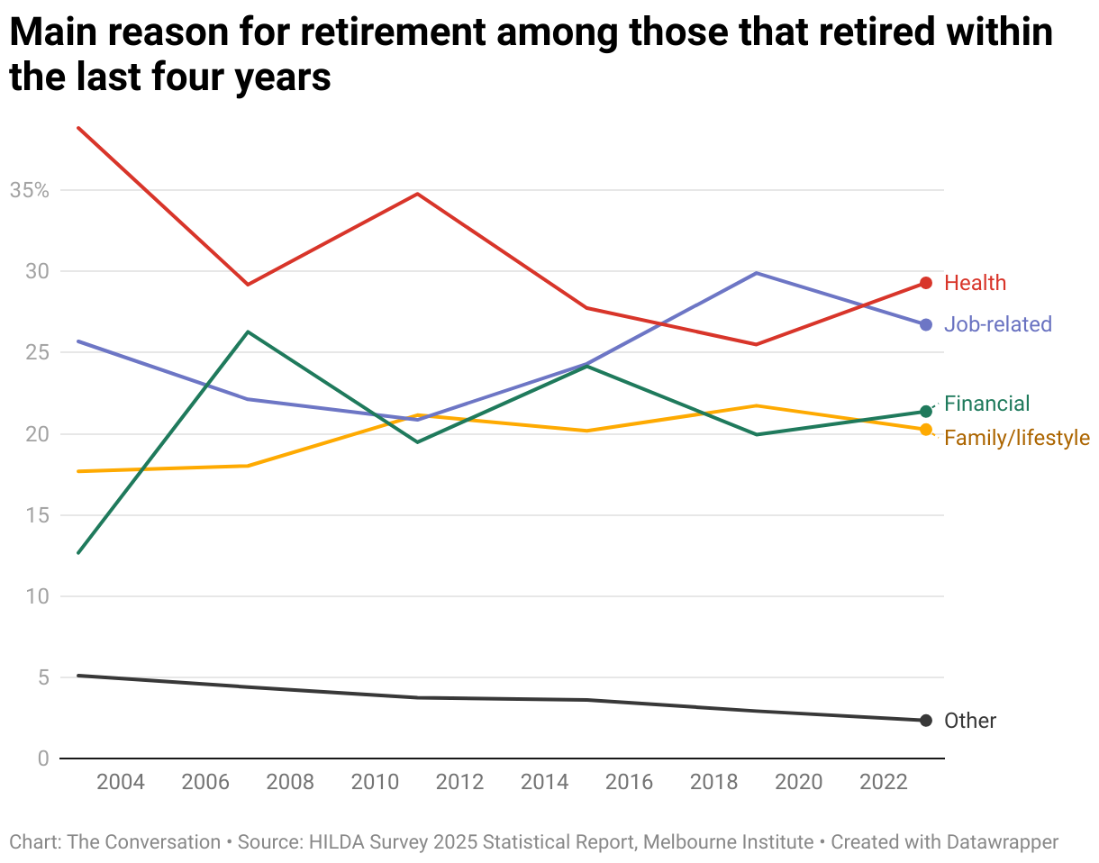 Main reason for retirement among those that retired within the last four years