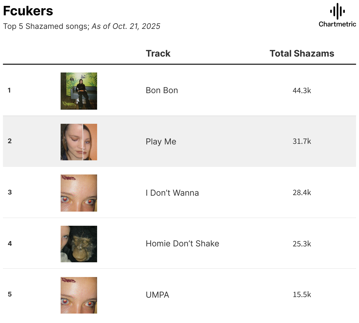 Top 5 Shazamed songs; As of Oct. 21, 2025