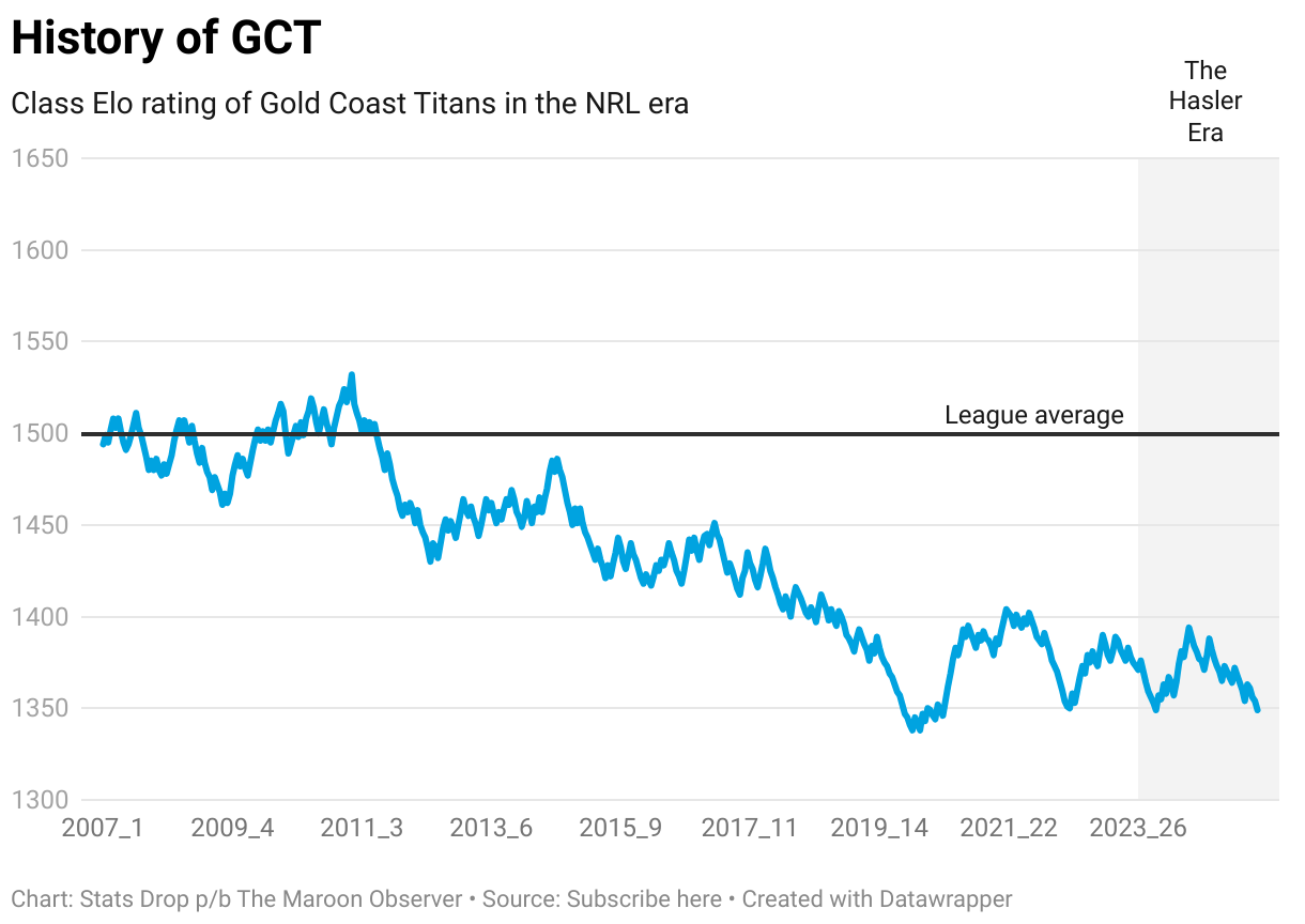Class Elo rating of Gold Coast Titans in the NRL era