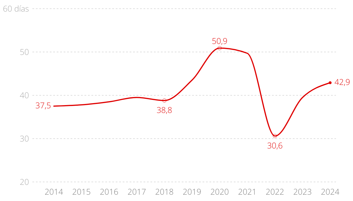Procesos de incapacidad temporal, en días