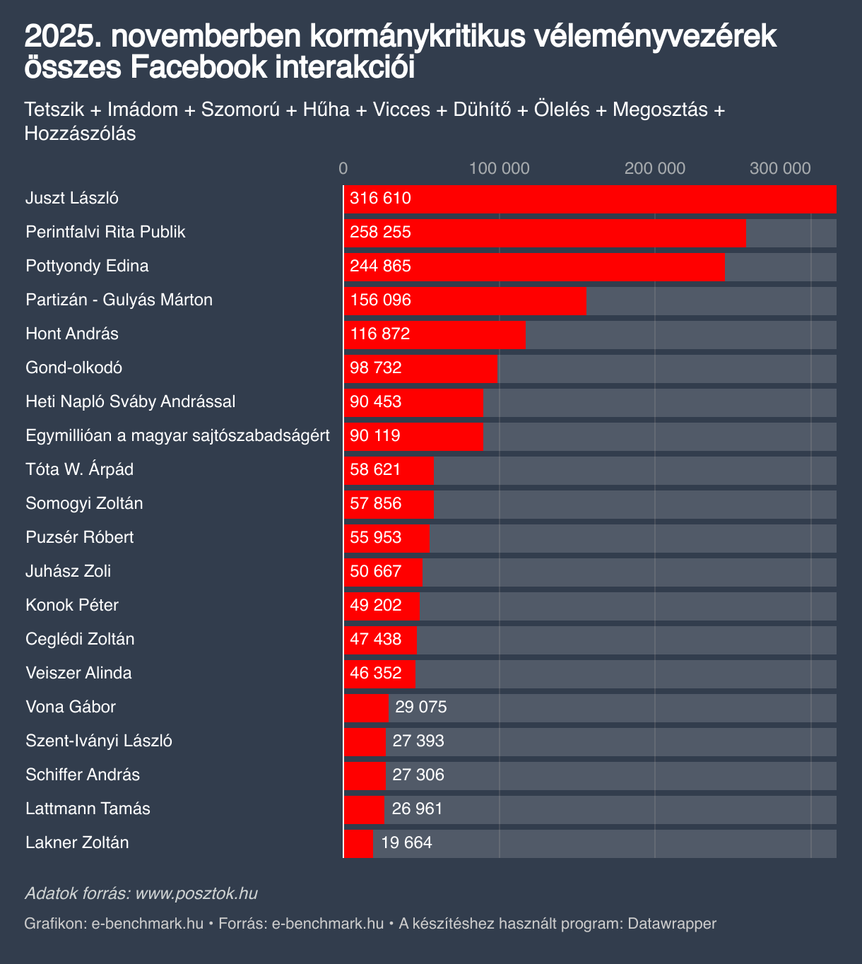 2025. novemberben kormánykritikus véleményvezérek összes Facebook interakciói