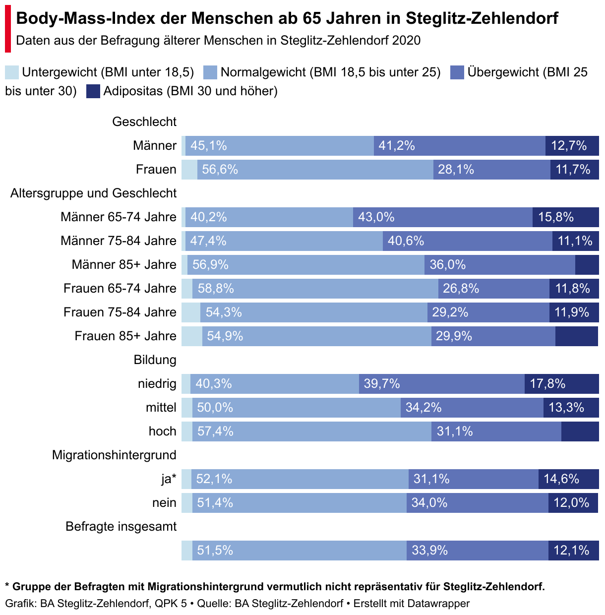Body-Mass-Index der Menschen ab 65 Jahren in Steglitz-Zehlendorf