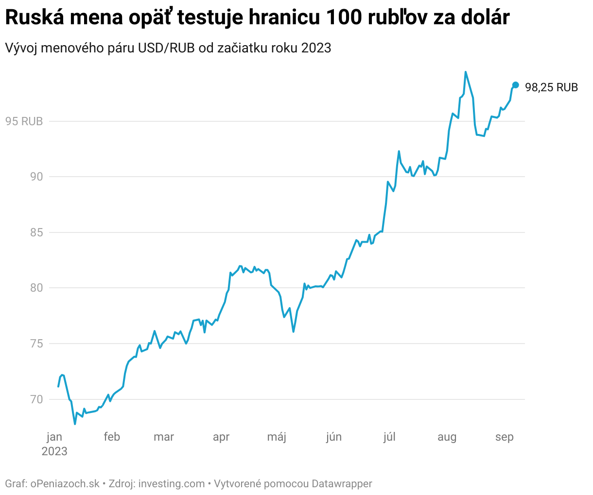 Vývoj menového páru USD/RUB od začiatku roku 2023