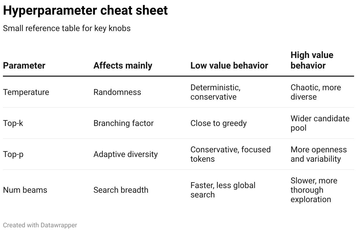 Small reference table for key knobs