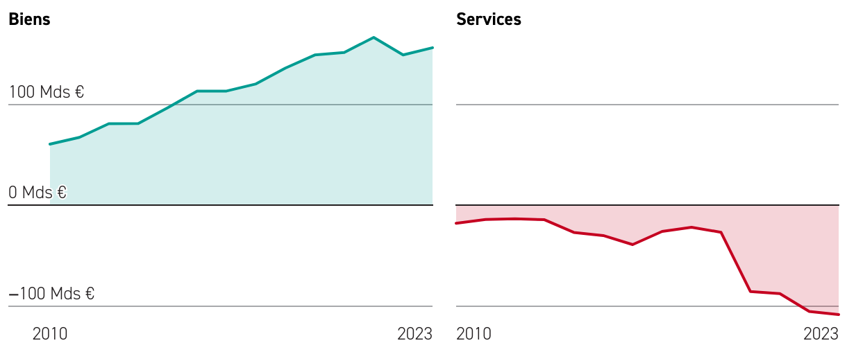 Balance commerciale annuelle des biens et des services entre l’UE et les Etats-Unis, en euros.