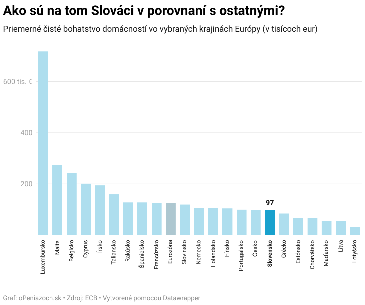 Priemerné čisté bohatstvo domácností vo vybraných krajinách Európy (v tisícoch eur)