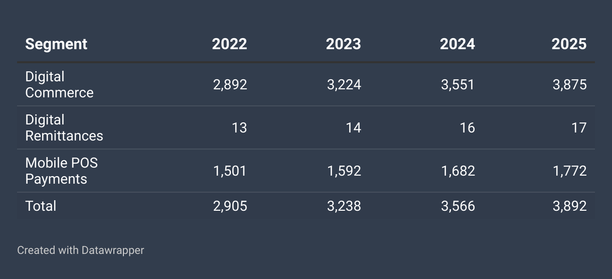 Users by market in million users 2022-2025, with 2025 forecast