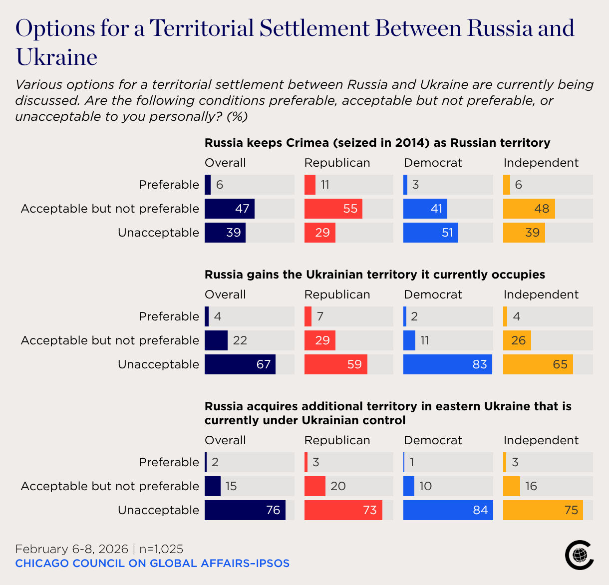 Various options for a territorial settlement between Russia and Ukraine are currently being discussed. Are the following conditions preferable, acceptable but not preferable, or unacceptable to you personally? (%)