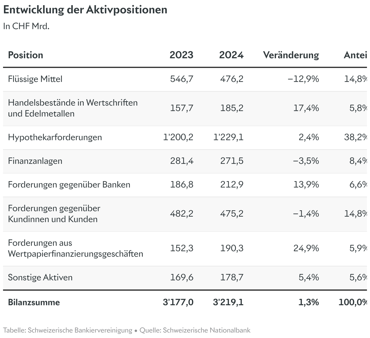 Entwicklung der Aktivpositionen