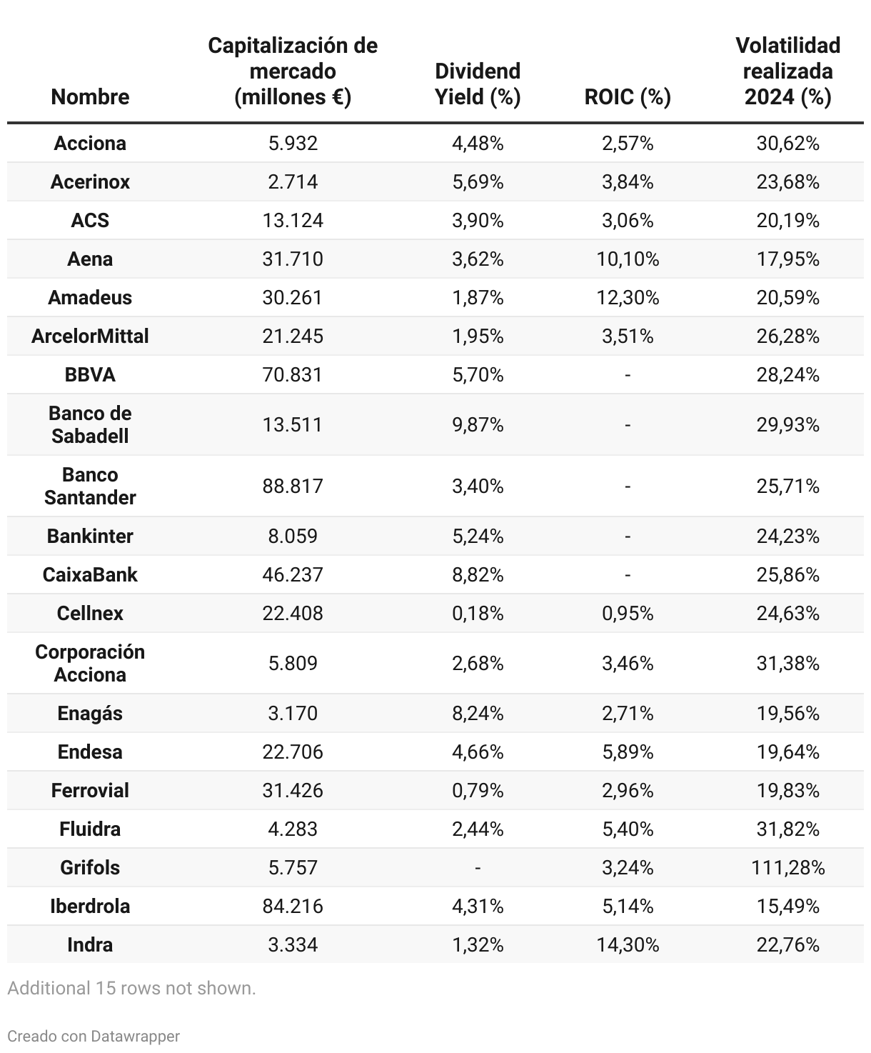 Tabla 2. Valor de mercado, rentabilidad y volatilidad del Ibex