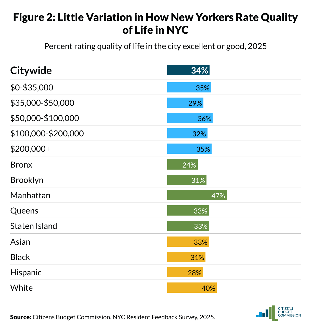 Percent rating quality of life in the city excellent or good, 2025
