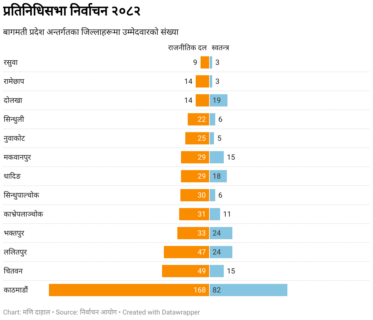 बागमती प्रदेश अन्तर्गतका जिल्लाहरूमा उम्मेदवारको संख्या
