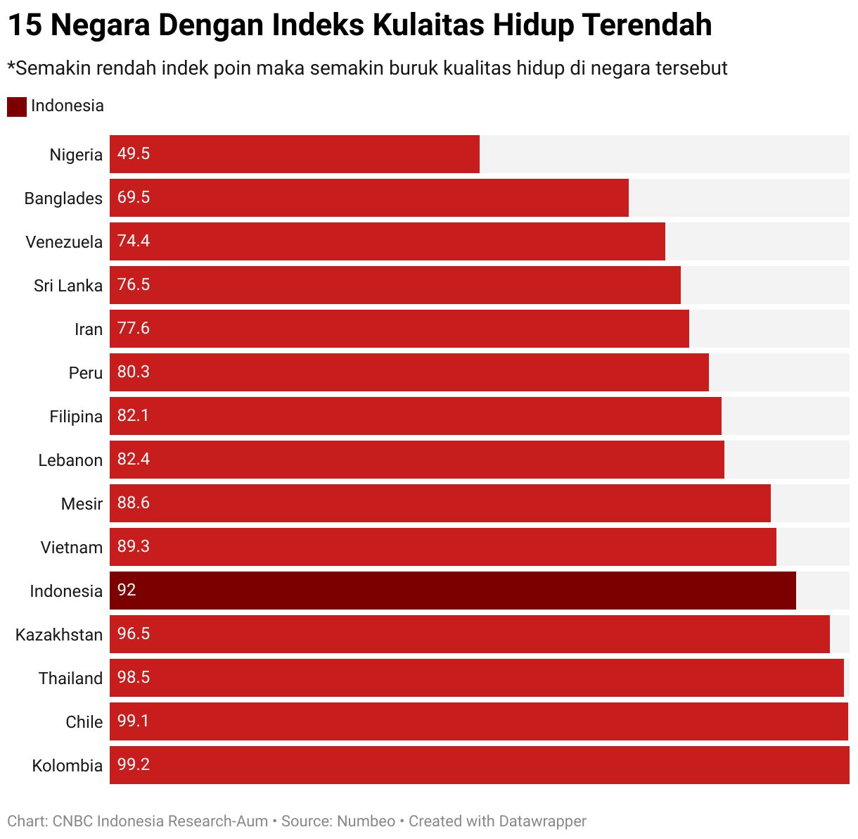 *Semakin rendah indek poin maka semakin buruk kualitas hidup di negara tersebut