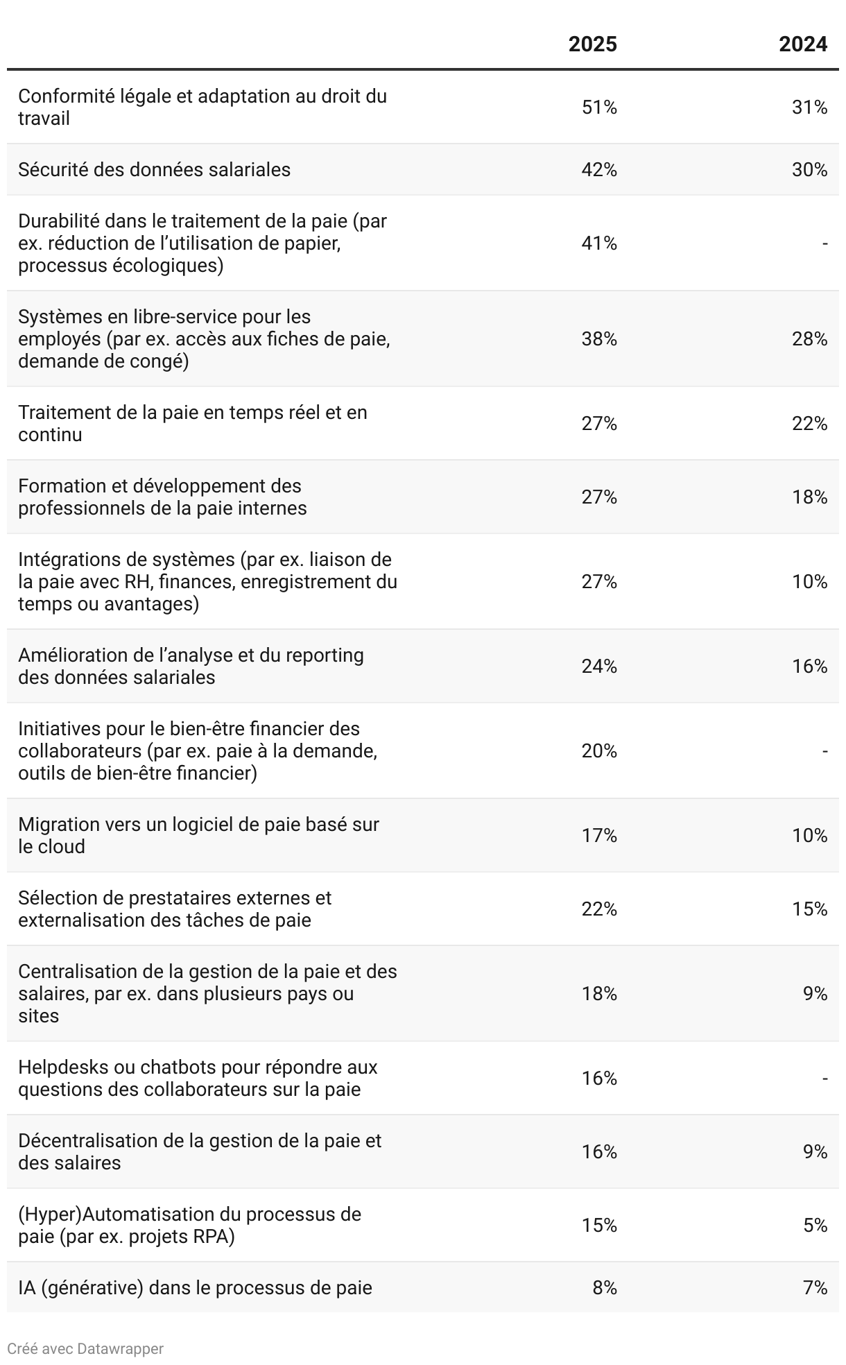 Évolution des investissements dans la gestion des salaires par les employeurs belges (% d’employeurs qui investissent)