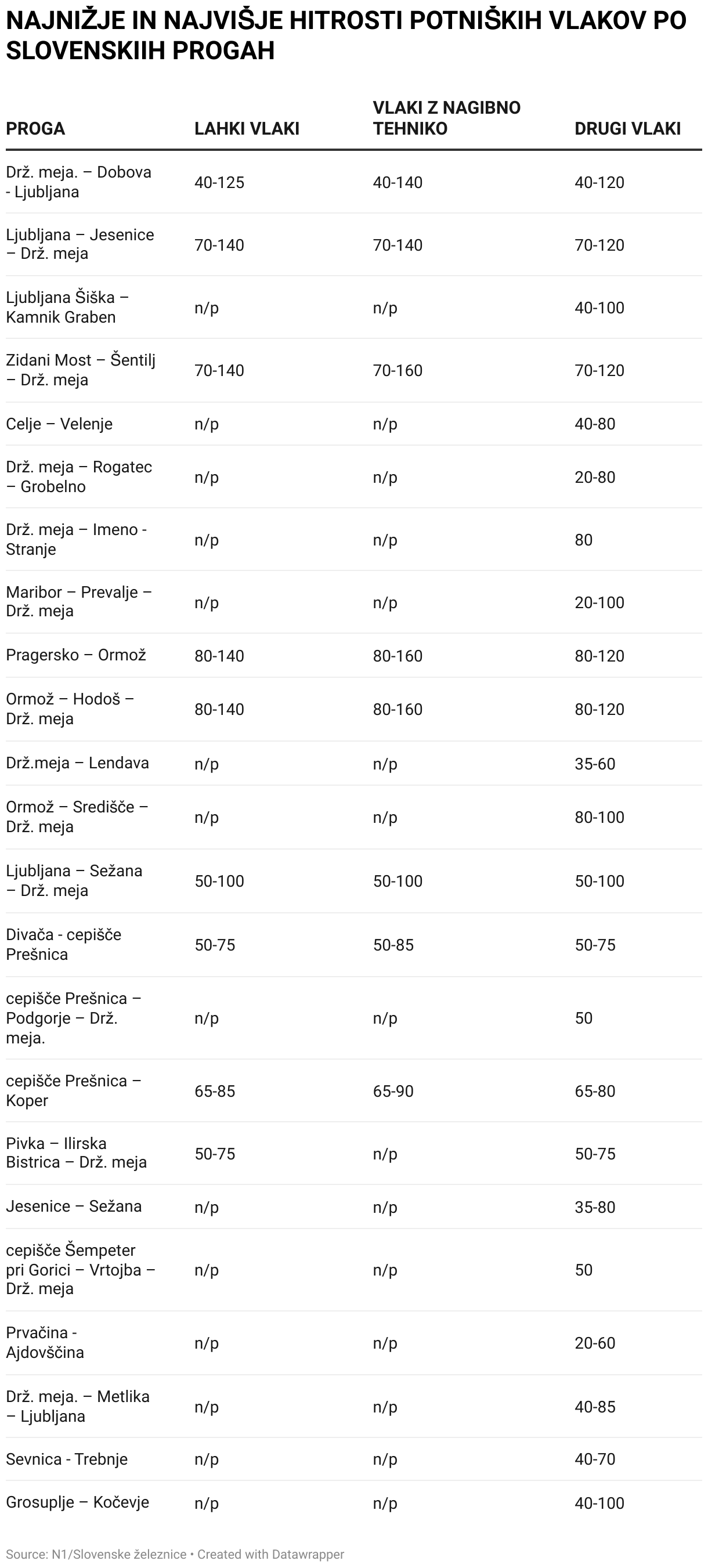 NAJNIŽJE IN NAJVIŠJE HITROSTI POTNIŠKIH VLAKOV PO SLOVENSKIIH PROGAH