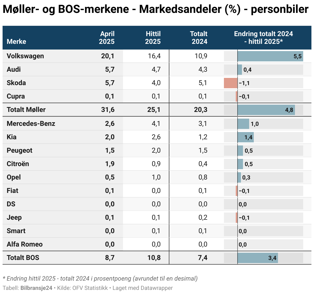 Møller- og BOS-merkene - Markedsandeler (%) - personbiler