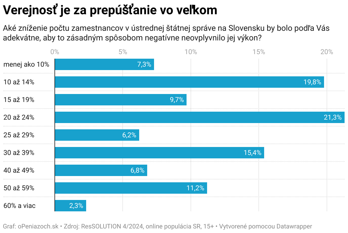 Aké zníženie počtu zamestnancov v ústrednej štátnej správe na Slovensku by bolo podľa Vás adekvátne, aby to zásadným spôsobom negatívne neovplyvnilo jej výkon?