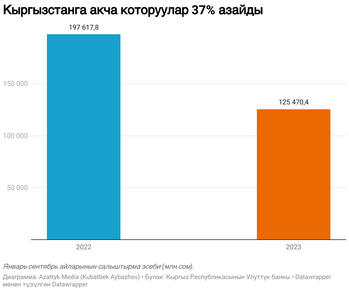 Кыргызстанга акча которуулар 37% азайды