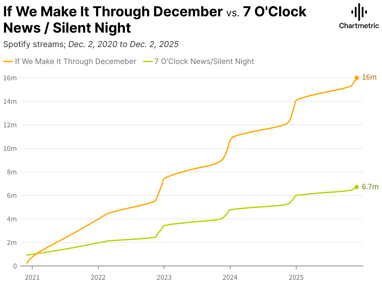 Spotify streams; Dec. 2, 2020 to Dec. 2, 2025