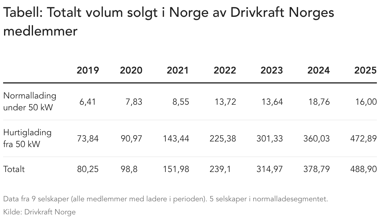Tabell: Totalt volum solgt i Norge av Drivkraft Norges medlemmer