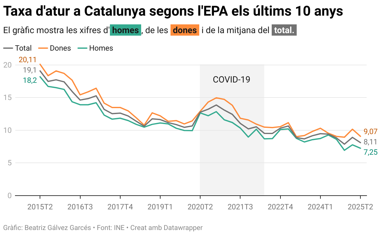 El gràfic mostra les xifres d'homes, de les dones i de la mitjana del total.