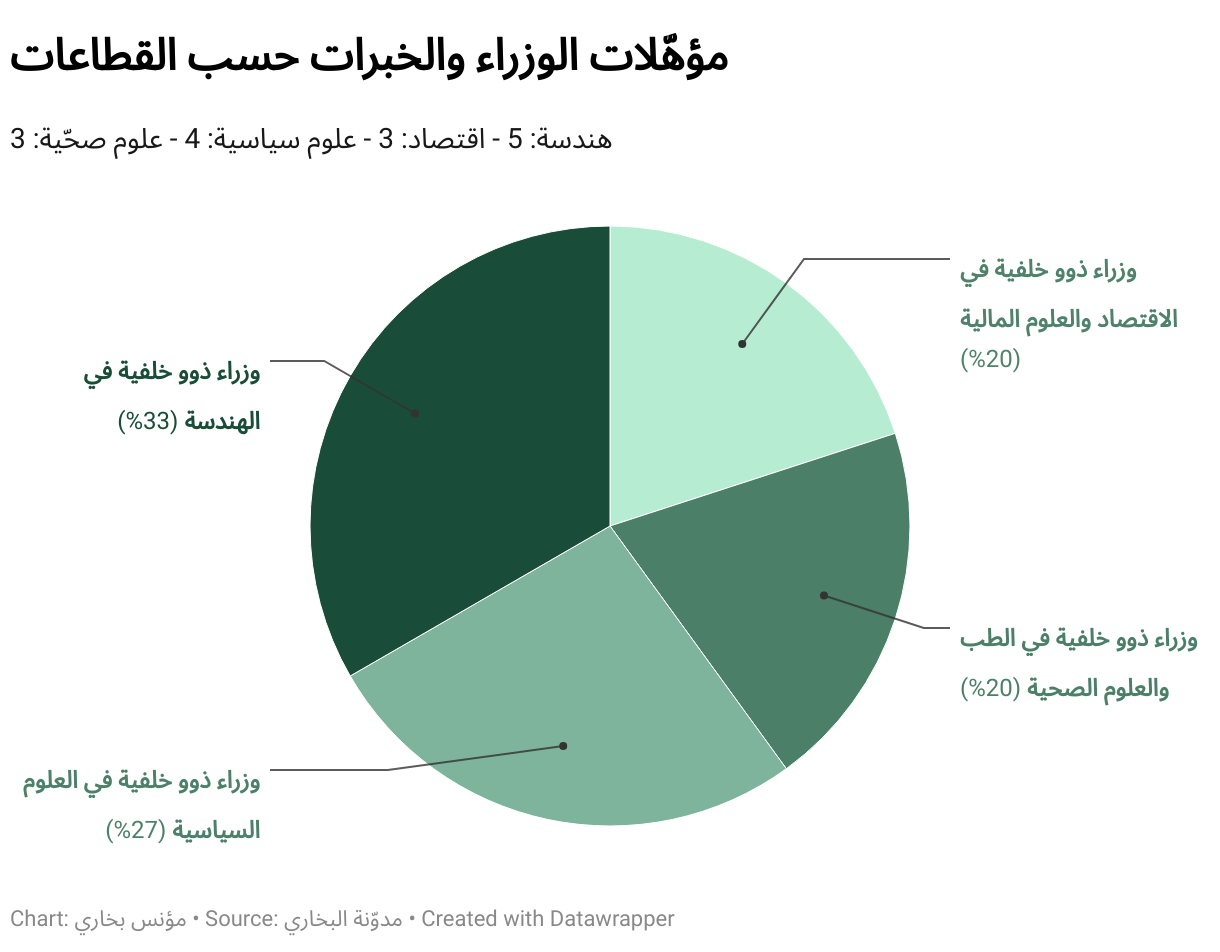هندسة: 5 - اقتصاد: 3 - علوم سياسية: 4 - علوم صحّية: 3