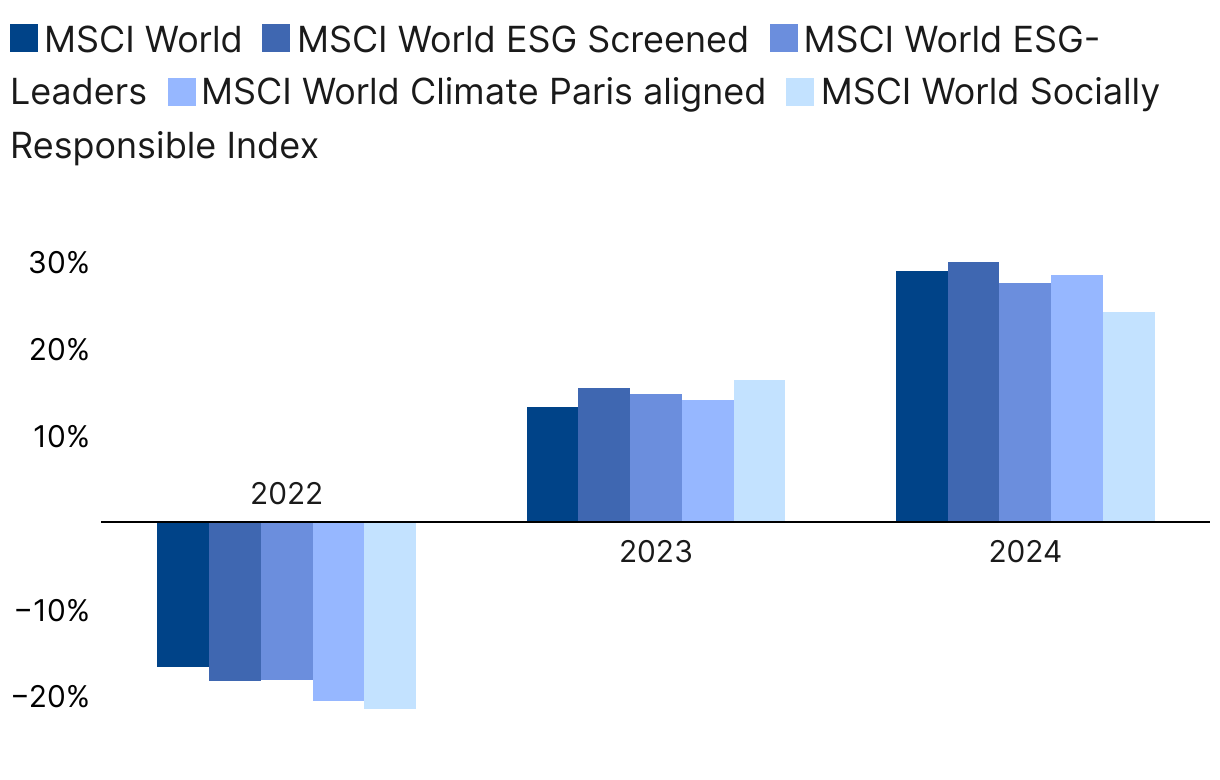Renditen von ESG-Indizes und MSCI World im Vergleich