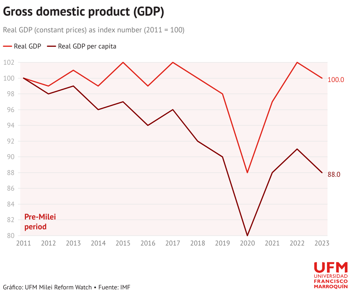 Real GDP (constant prices) as index number (2011 = 100)