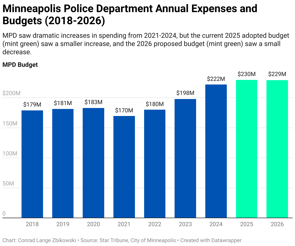 Minneapolis Police Department Annual Expenses and Budgets (2018-2026)