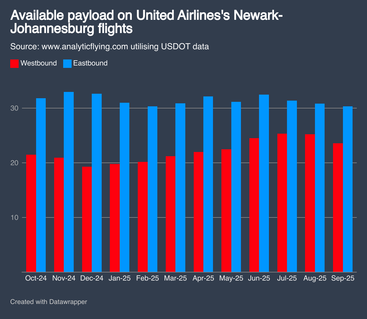 Available payload on United Airlines's Newark-Johannesburg flights