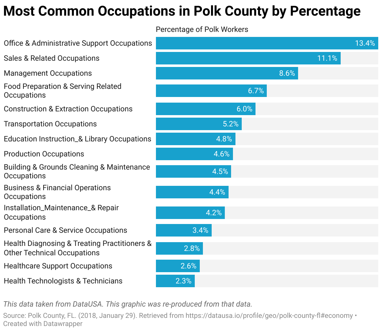 Most Common Occupations in Polk County by Percentage