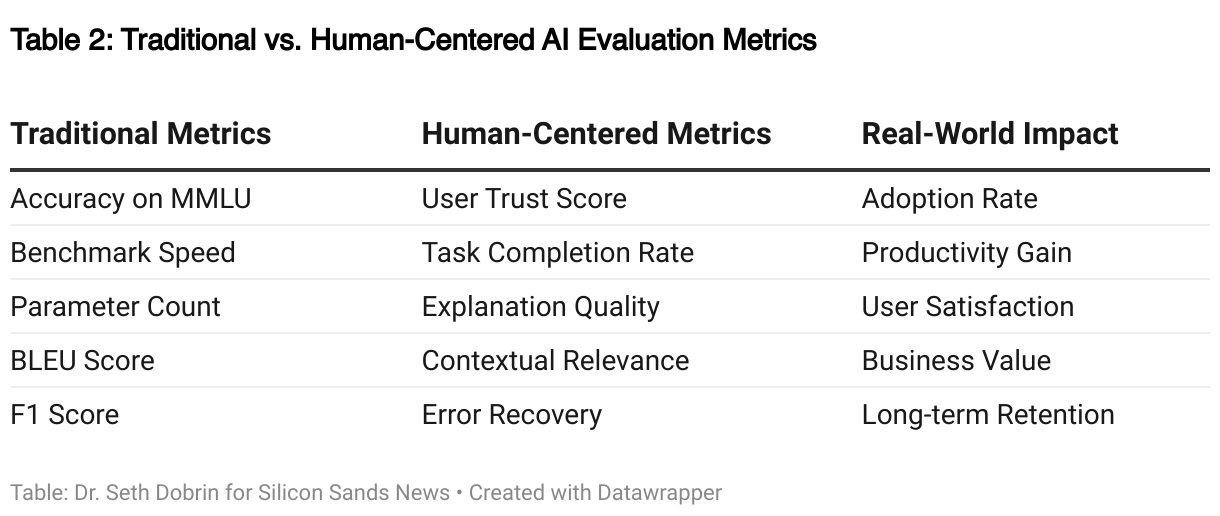 Table 2: Traditional vs. Human-Centered AI Evaluation Metrics