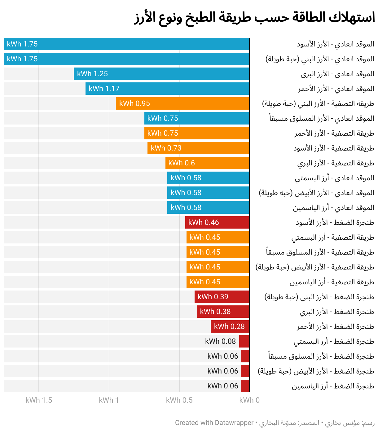 استهلاك الطاقة حسب طريقة الطبخ ونوع الأرز