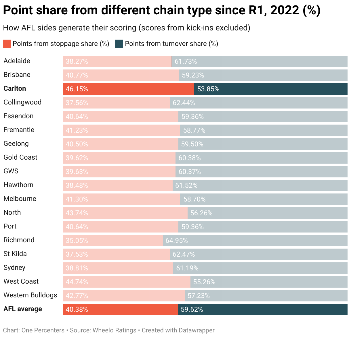 How AFL sides generate their scoring (scores from kick-ins excluded)
