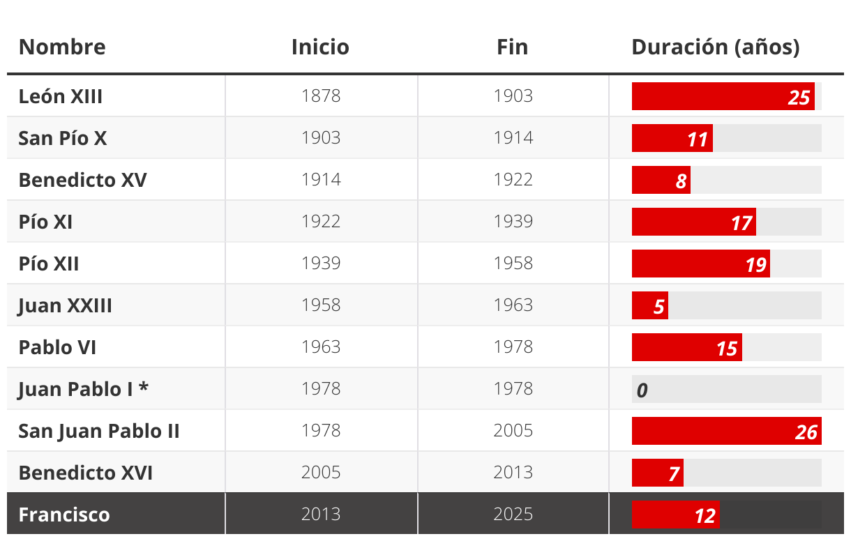 Duración de los pontificados