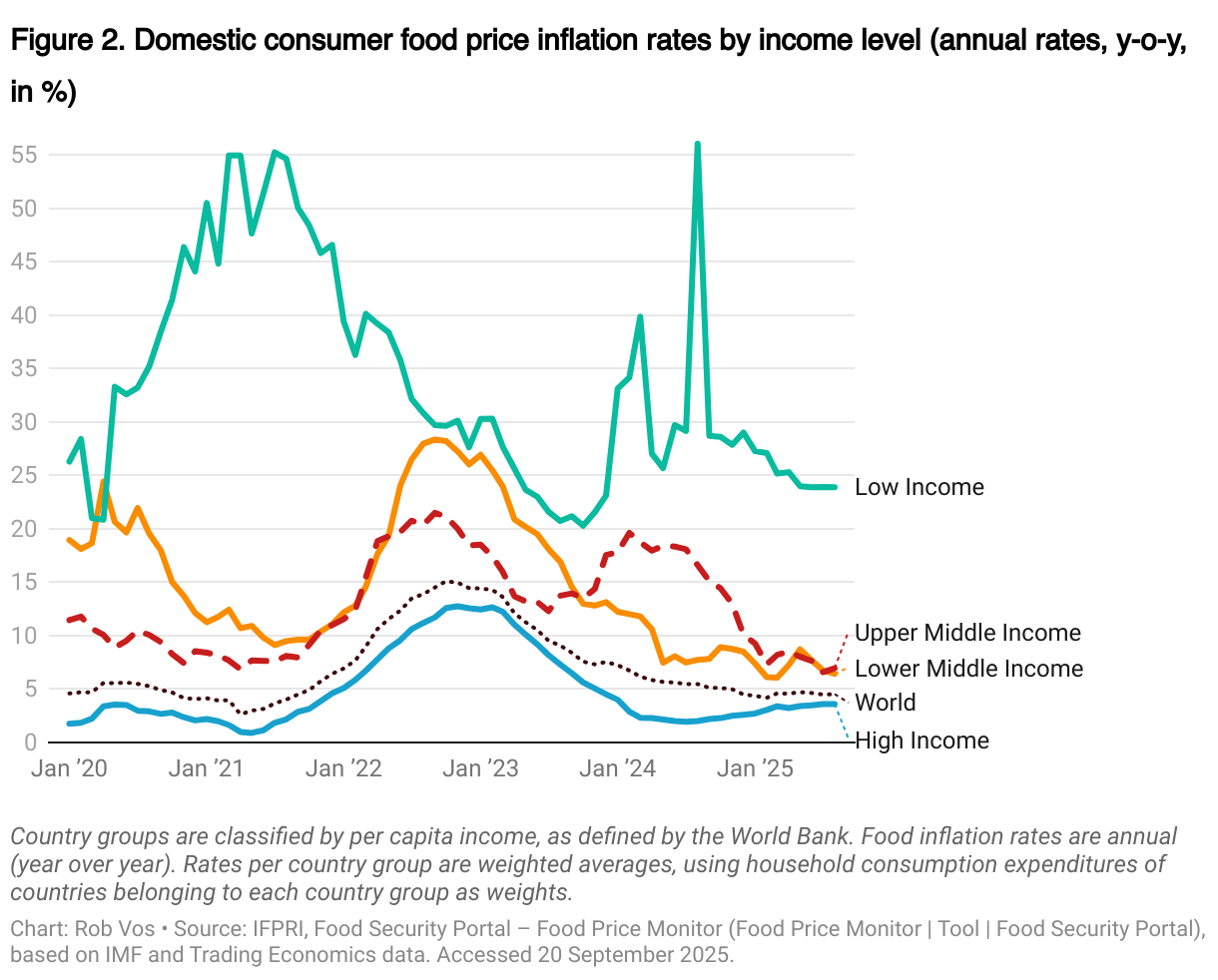 Figure 2. Domestic consumer food price inflation rates by income level (annual rates, y-o-y, in %)