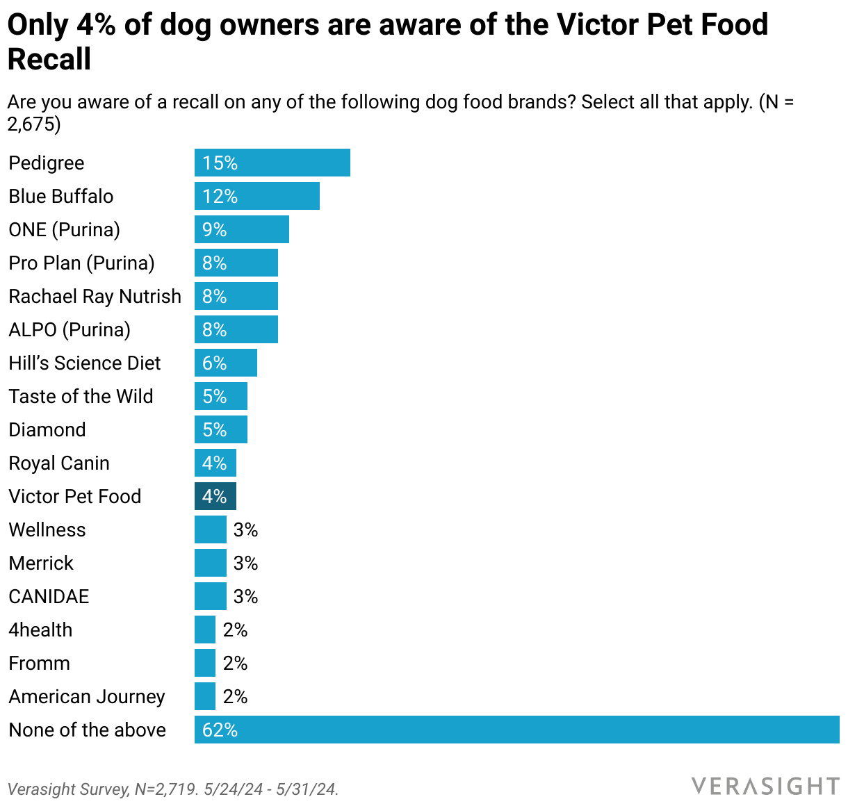 Are you aware of a recall on any of the following dog food brands? Select all that apply. (N = 2,675)