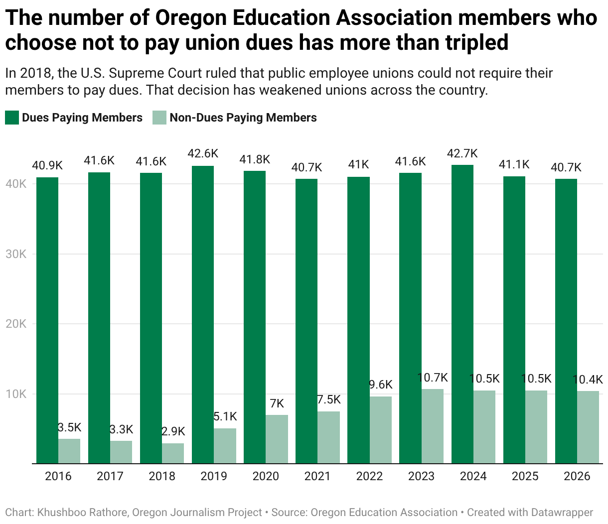 The number of Oregon Education Association members who choose not to pay union dues has more than tripled
