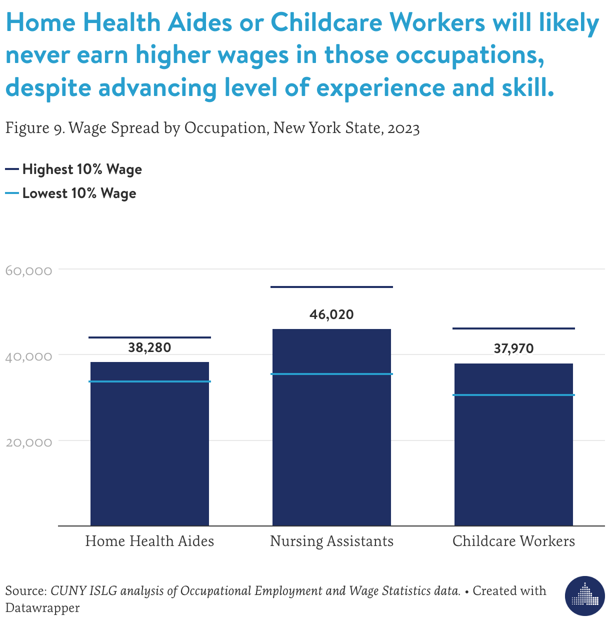Home Health Aides or Childcare Workers will likely never earn higher wages in those occupations, despite advancing level of experience and skill.