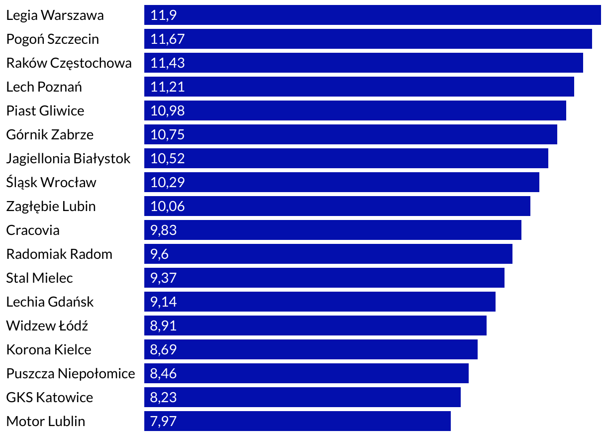 Szacunkowe wpływy za ranking historyczny i kwotę stałą w sezonie 2024/25 (w mln zł)