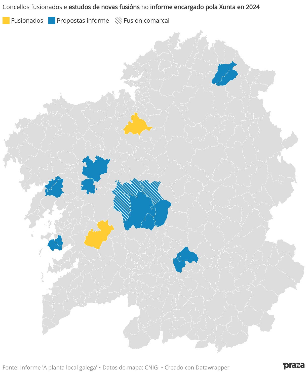 Concellos fusionados e estudos de novas fusións no informe encargado pola Xunta en 2024