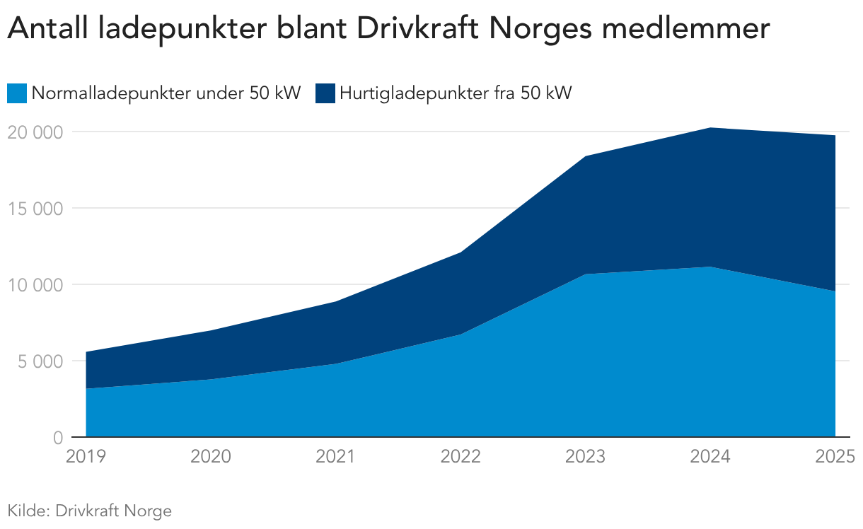 Antall ladepunkter blant Drivkraft Norges medlemmer